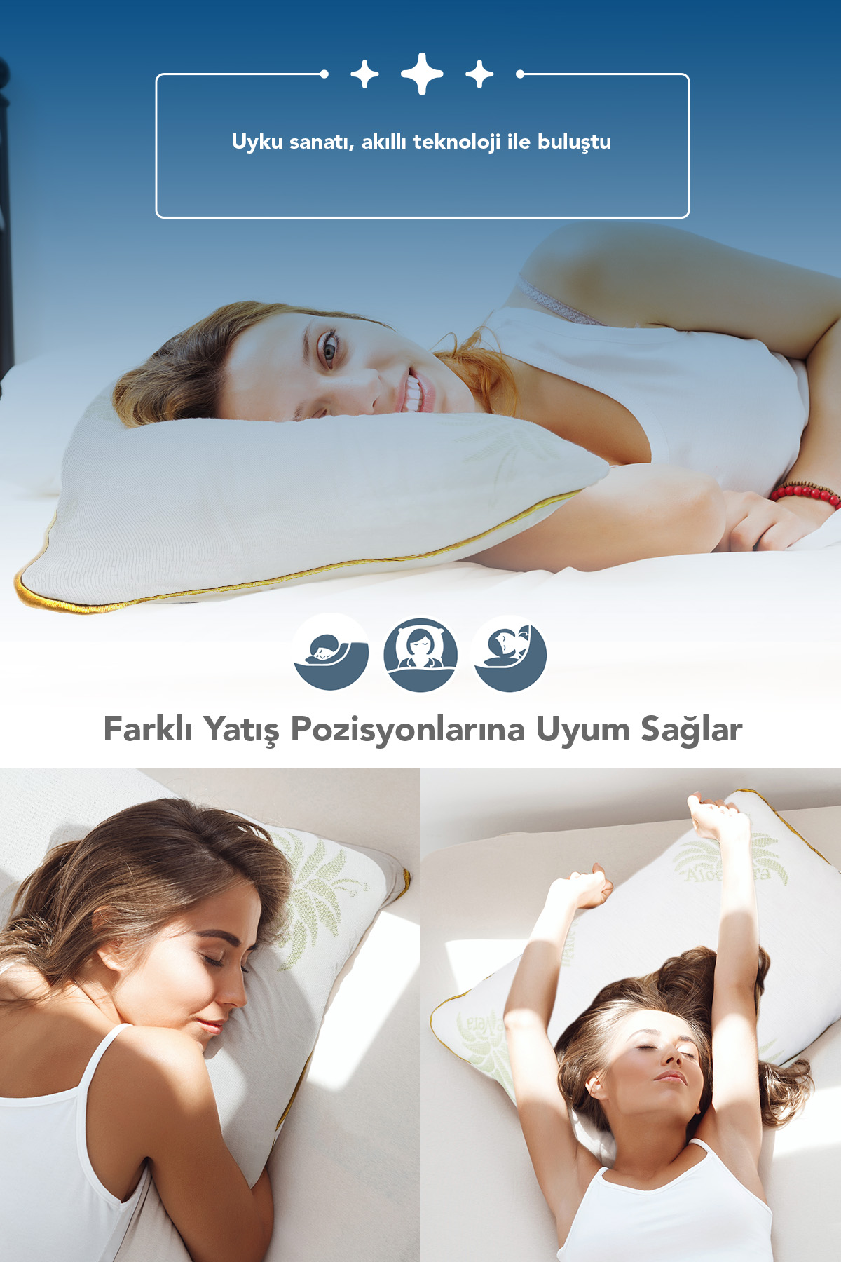 Doğanın ferahlığını teknolojiyle buluşturan bu özel yastık, uyku kalitenizi artırmak için tasarlandı. Aloe Vera özlü kumaşı ve ortopedik Visco dolgusu sayesinde hem sağlığınızı destekler hem de mükemmel bir uyku deneyimi sunar.