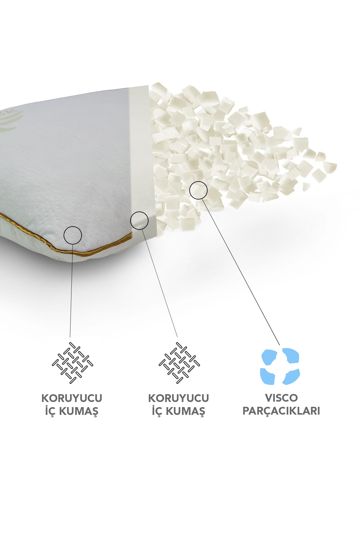 ✅ Visco Parçacıklı Dolgu (1200 gr): Hafızalı visco sünger parçacıkları, baş ve boyun yapınıza tam uyum sağlar; omurga hizalamasını destekler, sabah ağrısız uyanmanızı sağlar.