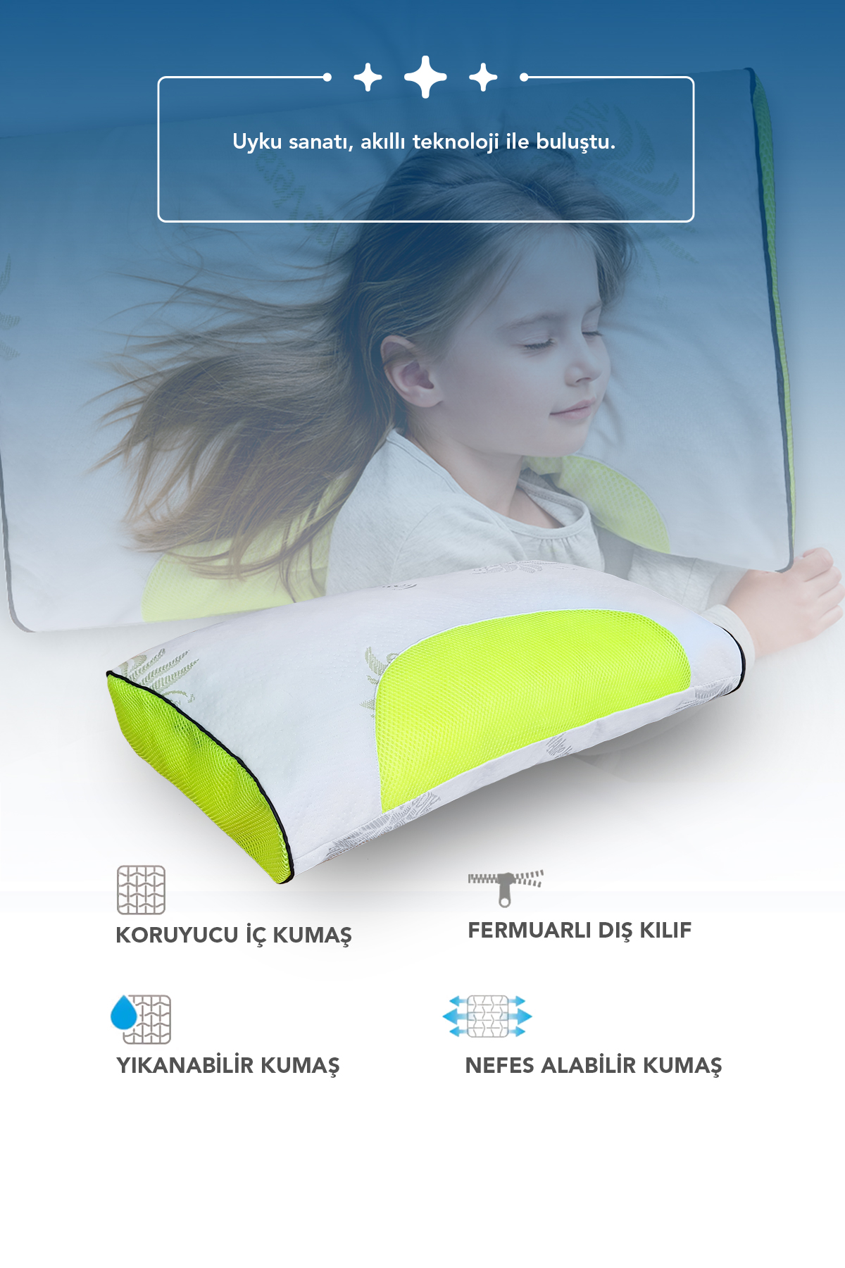 Çocuğunuzun baş ve boyun yapısına uygun olarak geliştirilen Visco parçacıklı dolgu, büyüme döneminde doğru omurga desteği sunar.